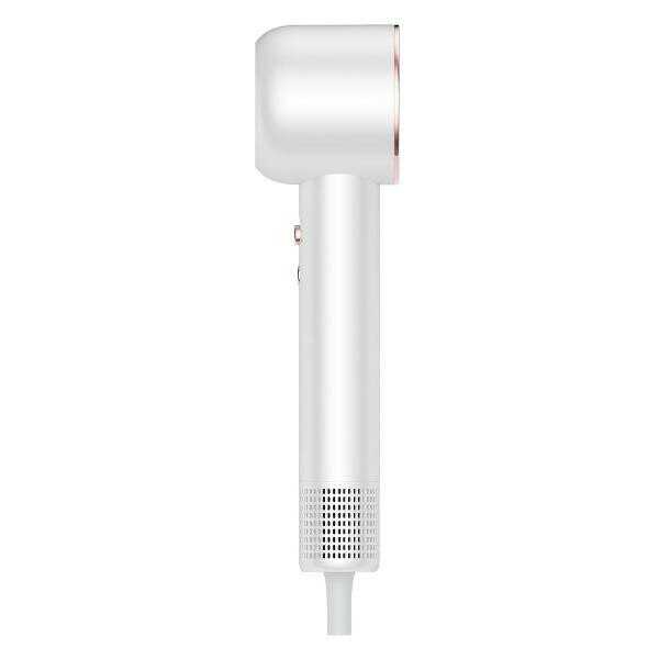 Необычный на вид. Есть 2 магнитные насадки . Температурный режим в трёх цветах. Холодный (синий,), умеренный ( оранжевый), красный (горячий). Фен считается не шумным. Шумит интересненько так, вроде не так громко. Диффузора нет, просто две насадки, пошире и поуже. В руке ощущается не тяжёлым.