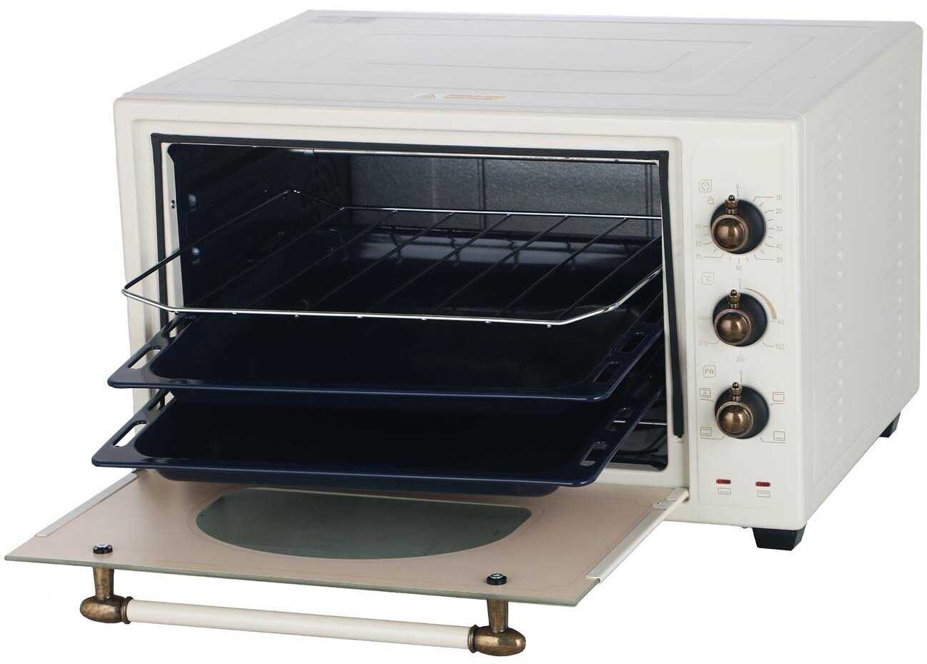 Дополнительная информация : | Режимов работы - 1, Кабель питания 1.2 м, Звуковой таймер, Таймер с отключением, Прорезиненные ножки, Открывание двери вниз, Термостат, Индикация включения, Индикация температуры, Индикация времени, Индикация режима работы, В комплекте: решетка плоский противень - 2 шт. глубокий противень |