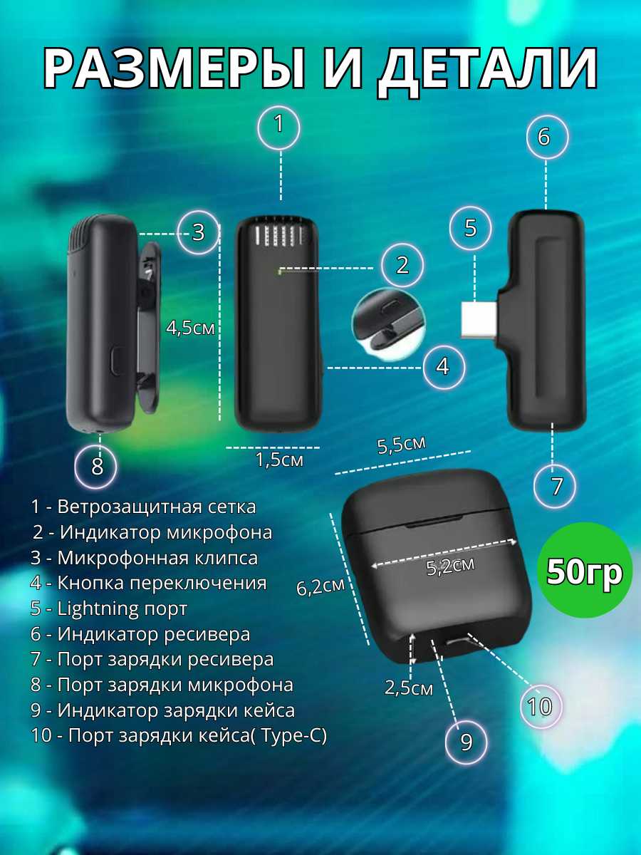 Подробная комплектация : | Микрофон, Ресивер, Кейс для зарядки, Кабель Type-C для зарядки кейса, Инструкция, Упаковка |