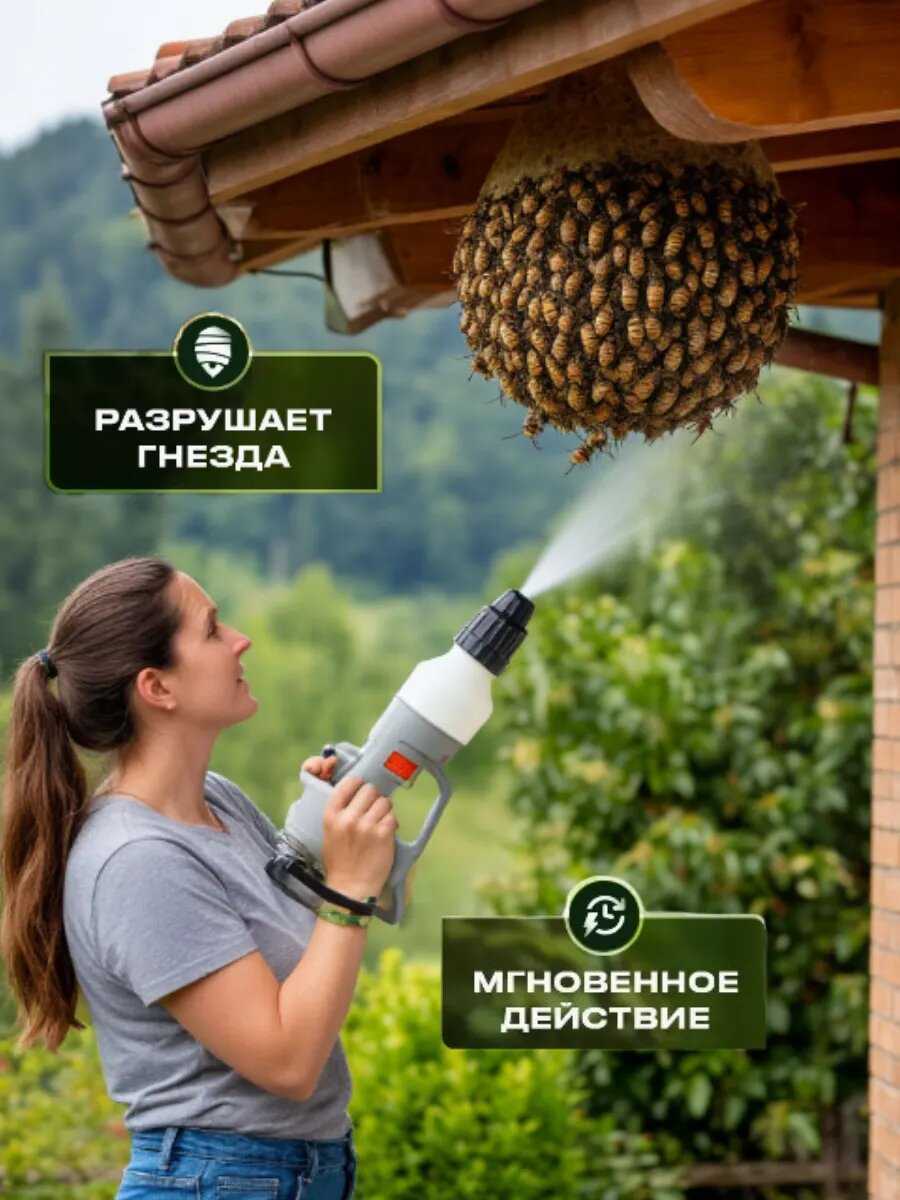 - + Позволяет бороться с насекомыми на открытом воздухе. Спреи не эффективны. Обрабатывать деревянные конструкции с внешней, уличной стороны. Опять же обычные спреи уступают. Выветриваются.