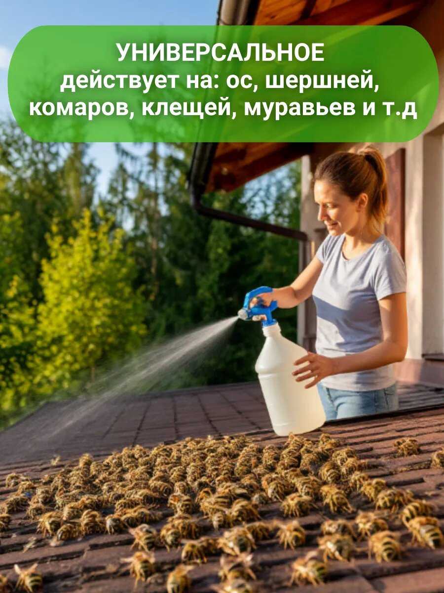 Позволяет бороться с насекомыми на открытом воздухе. Спреи не эффективны. Обрабатывать деревянные конструкции с внешней, уличной стороны. Опять же обычные спреи уступают. Выветриваются.Используйте СИЗ мойте руки после работы с ним.