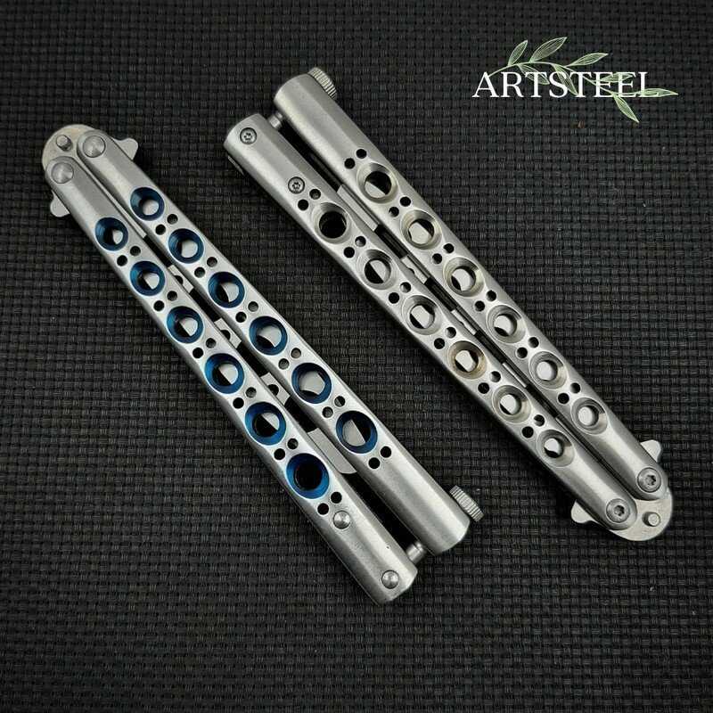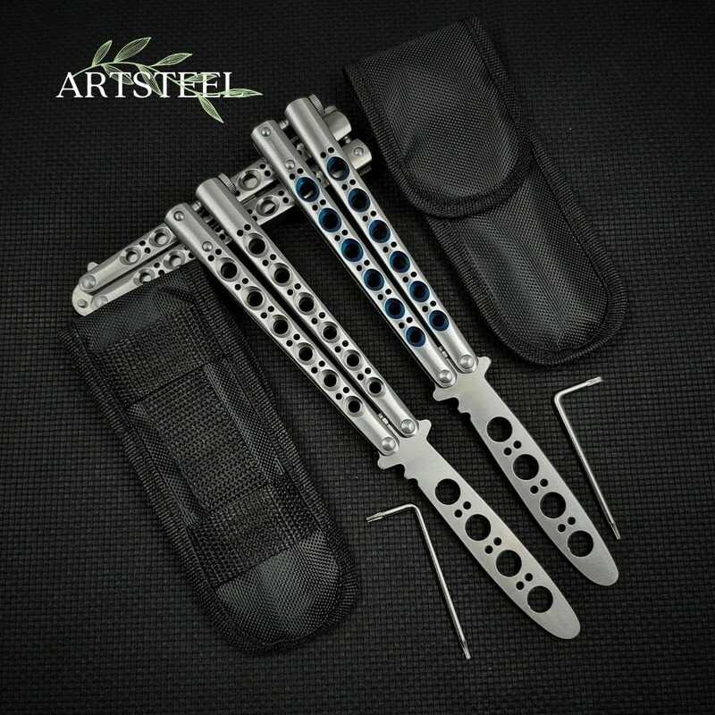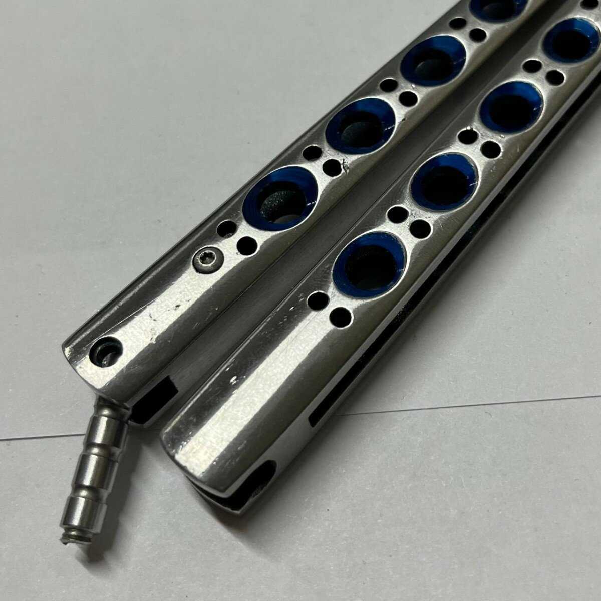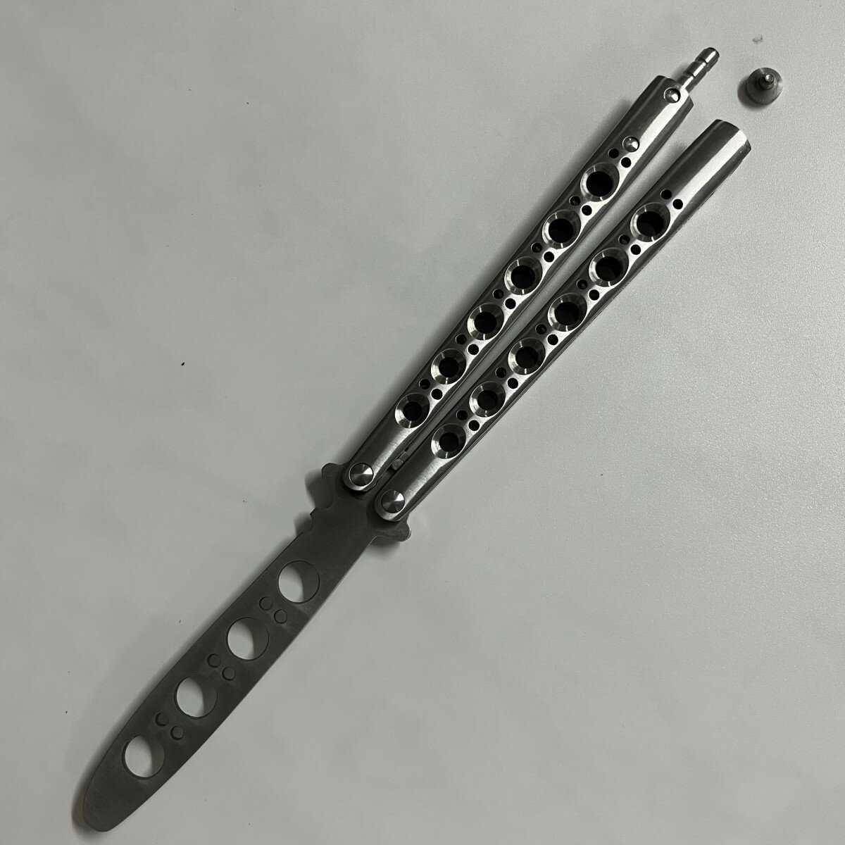 - + Тяжелый, выглядит как более менее достойный тренировочный балисонг. Сделан вроде как из нормального металла.
