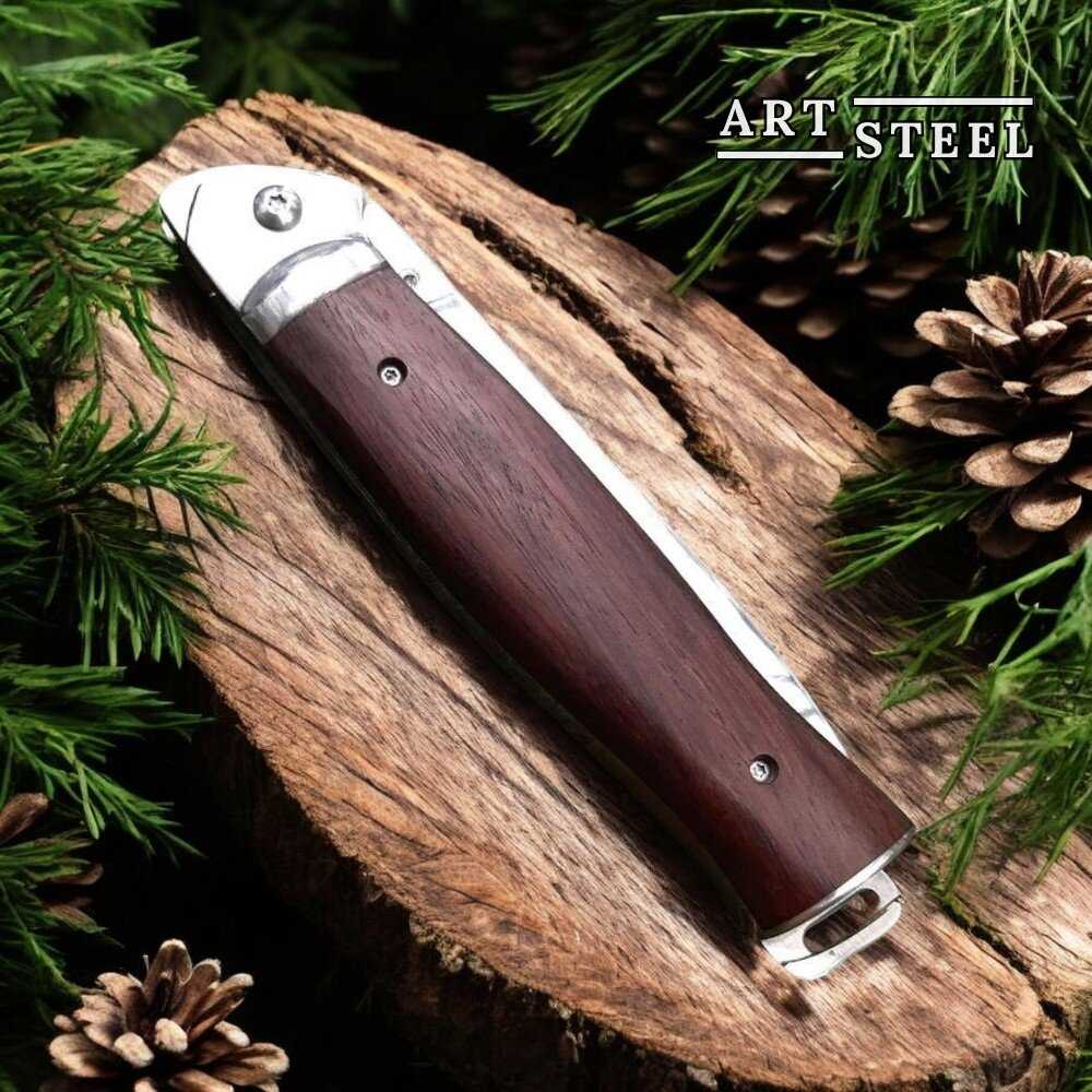 - + Классный нож! Очень плавный механизм открывания-закрывания. Приятно держать в руке. Детали подогнаны точно, ручка из дерева. Насколько прочная сталь клинка не известно, (в жестких условиях не использовался). Но видно, что очень хорошая заточка