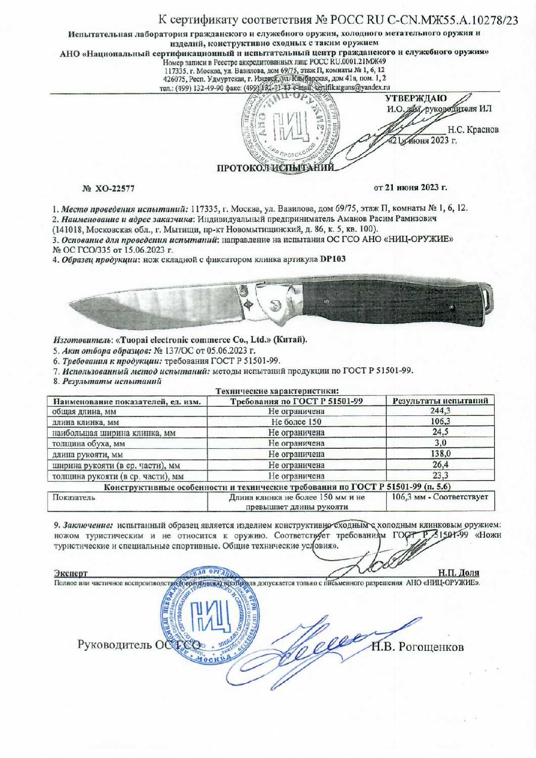 | Покрытие клинка : | полированное |