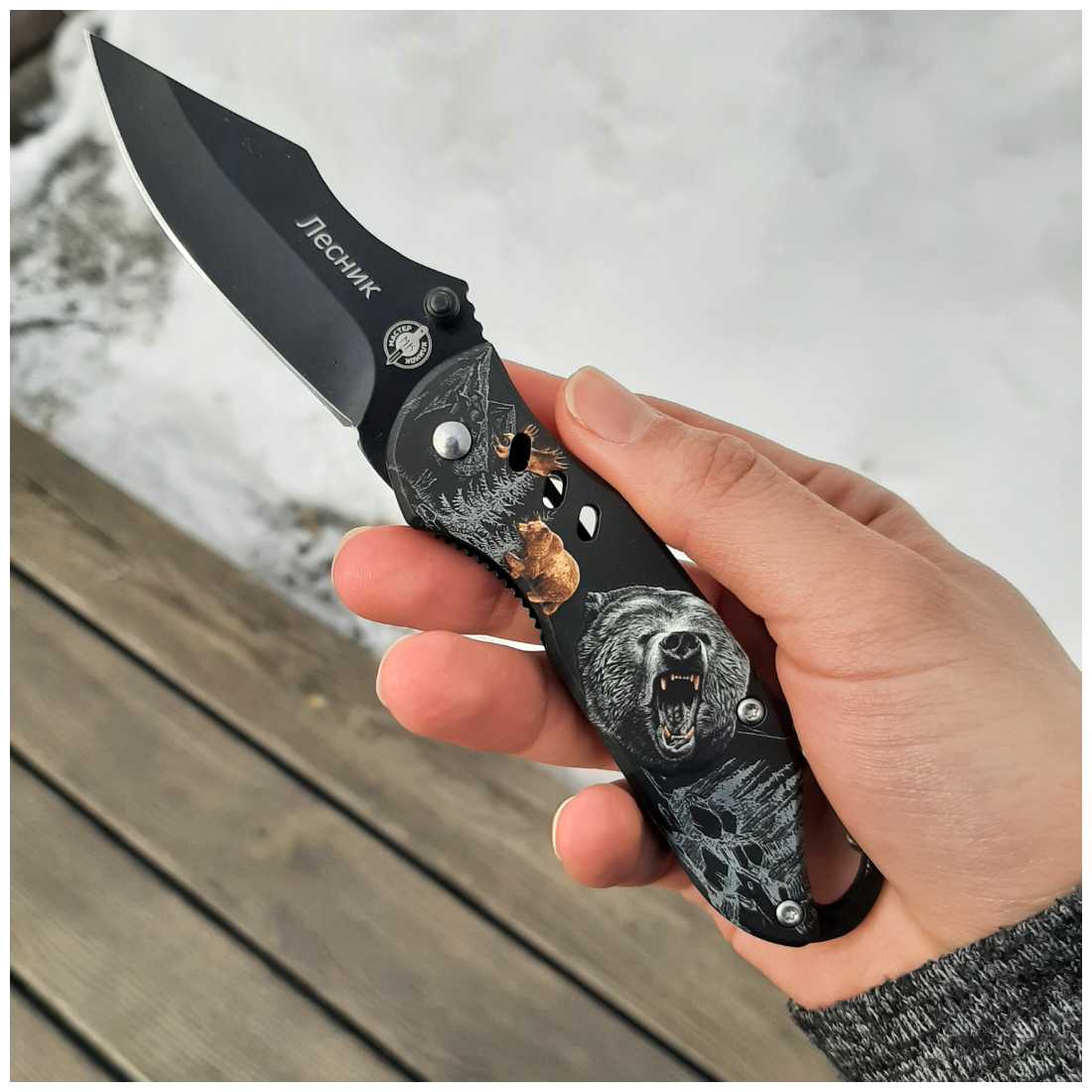 Хороший городской ножик за свои деньги. в руке лежит приятно. Увесистый. Механизм работает хорошо, нож острый из коробки. Но я смазал механизм, и заточил клинок. Надеюсь рисунок продержится долго. Накладки металлические.