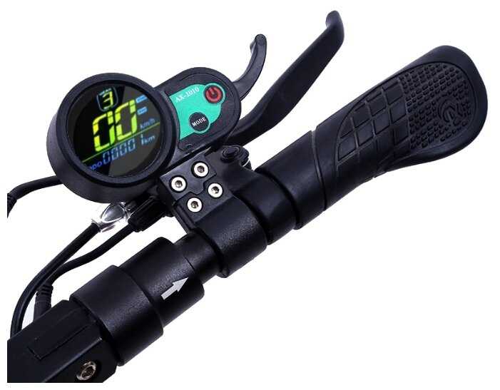 - Дисплей отображает скорость, заряд батареи и режимы езды.