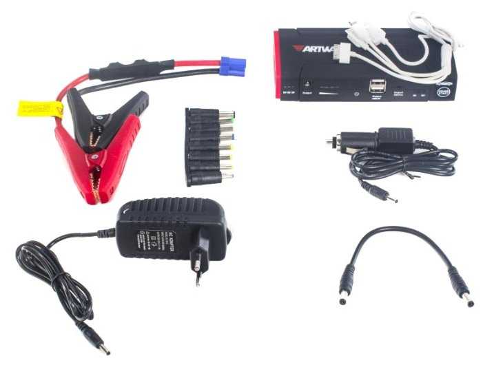 Подробная комплектация : | Пуско-зарядное устройство - 1 шт. Провода с зажимами - 1 шт. Зарядное устройство от сети 220 В - 1 шт. Зарядное устройство от прикуривателя - 1 шт. Переходники для ноутбуков - 8 шт. Кабели для зарядки телефонов: Type-C, Micro USB, Iphone Сумка-чехол - 1 шт. Инструкция - 1 шт. |