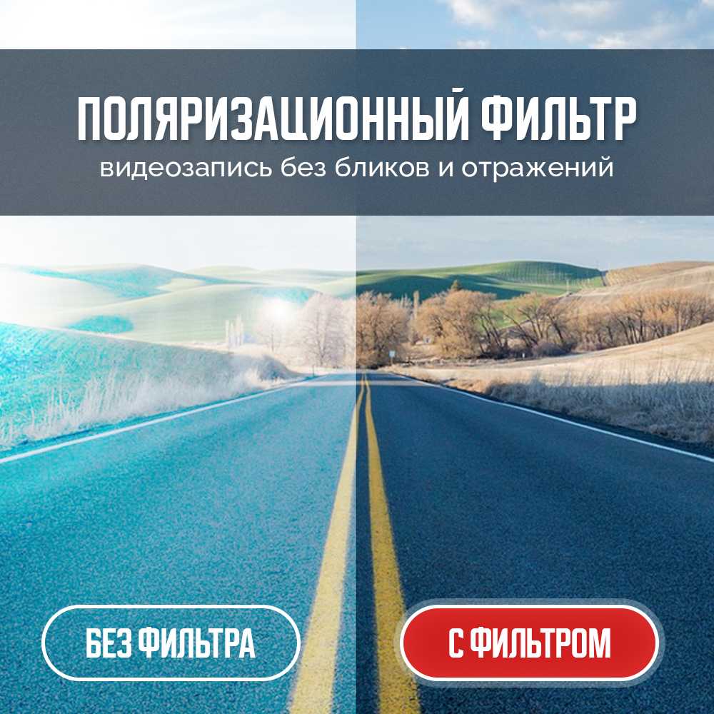 CPL-фильтр, входящий в комплект, эффективно устраняет блики от лобового стекла и фар встречных автомобилей. Это значительно улучшает детализацию и контрастность изображения, особенно в солнечную погоду. Однако в сумерках или при слабом освещении фильтр может чрезмерно затемнять картинку, поэтому некоторые пользователи рекомендуют снимать его в таких условиях. -