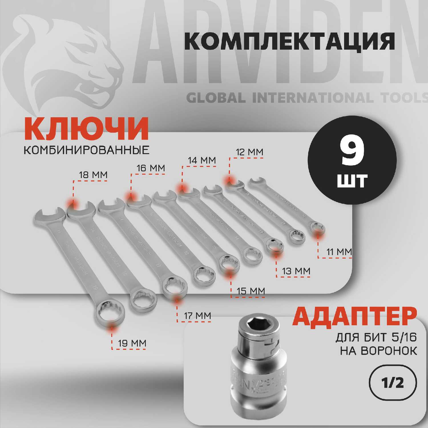 Количество гаечных ключей : | 9 шт. |
