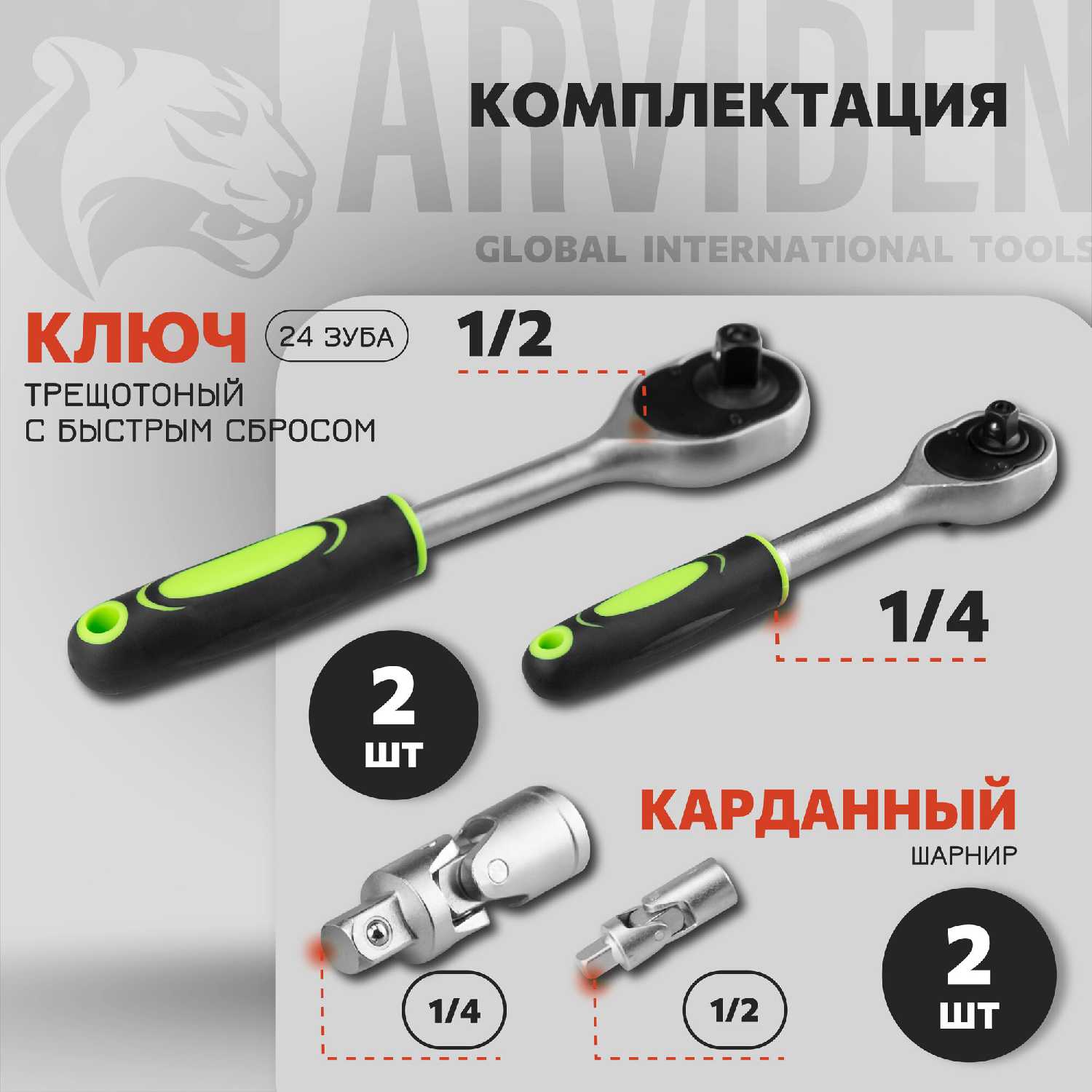 Инструменты в комплекте : | ключи гаечные, рукоять для бит, рукоять для головок, трещотка |