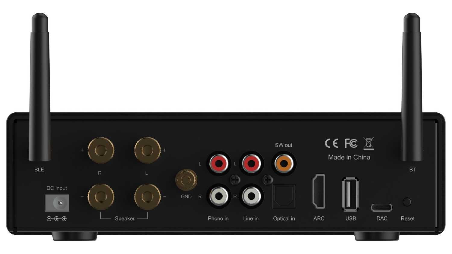 - + Достойный для своей стоимости звук, встроенный фонокорректор, HDMI Arc, возможность трансляции звука на 2 Bluetooth устройства, возможность конфигурирования через приложение.