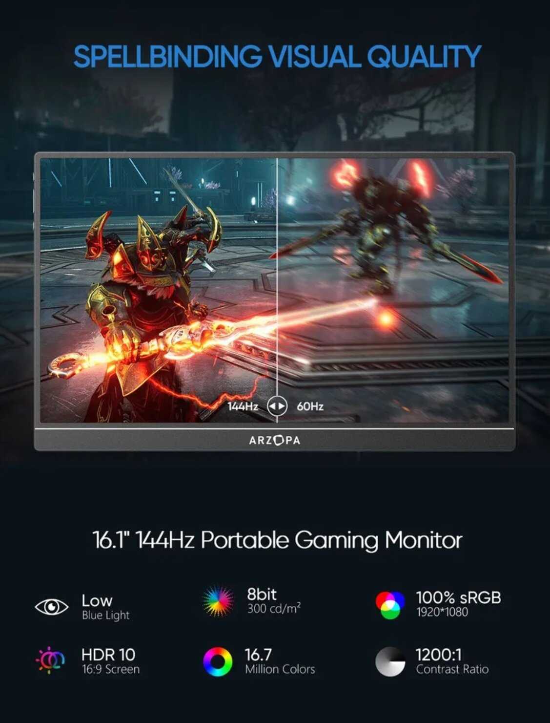 Я недавно приобрел монитор компьютерный ультратонкий ARZOPA G1 15.6’ 1080p 144Hz и хочу поделиться своим мнением об этом продукте. В первую очередь, я искал монитор с высокой частотой обновления и высоким разрешением, и этот продукт полностью оправдал мои ожидания.