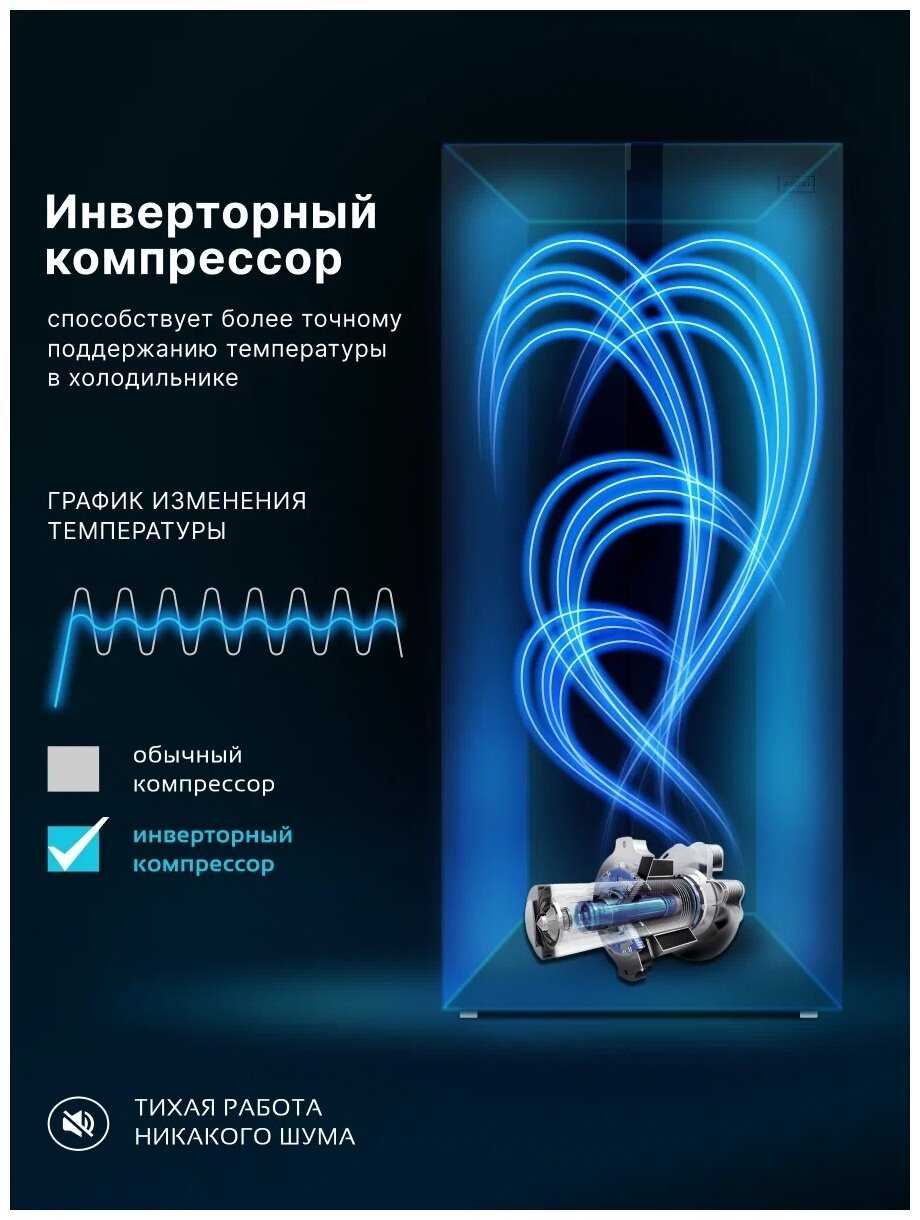 Дополнительная информация : | Внешний LED дисплей. Инверторный компрессор. Пользователи оценят: Total No Frost. Вместительный холодильная и морозильная камеры. Индикация включения. Материал двери - металл. Индикация режима работы. Открытие дверцы - налево/направо. Фиксация полок против выдвижения. Отделений в морозильной камере - 1. Внешнее покрытие двери - металл. Тип ручки - внутренняя. Тип освещения: LED. Освещение холодильной камеры. Подставка для яиц - 1 x 8. Формочки для льда: Да. Полезный объем: 400. Режим энергосбережения: Да. Режим суперохлаждения: Да. Цвет фурнитуры: белый. Режим суперзамораживания: Да. Индикация температуры в морозильной камере: Да. Освещение морозильной камеры: Да. Расположение морозильной камеры: боковое. Режим "отпуск": Да. Режим "охлаждение напитков": Да. Память аварийной температуры: Да. Выдвижная полка: Да. Контейнер для льда: Да. Разделитель морозильной камеры: Да. Внутреннее антибактериальное покрытие: Да. Тип освещения морозильной камеры: LED. Полок в морозильной камере: 4. Ящиков выдвижной морозильно |