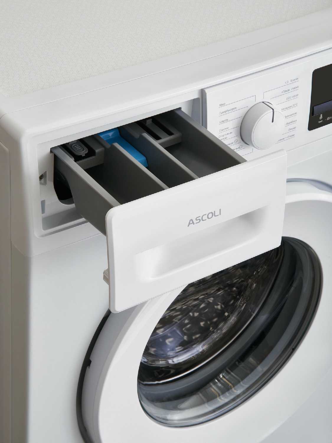 - Легко извлекаемый лоток для порошка с широким горлом для удобства засыпания.