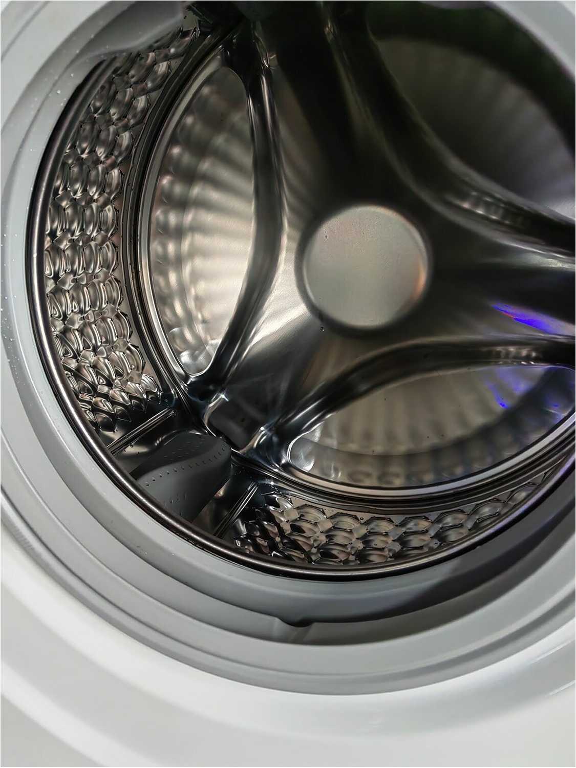 Барабан действительно вместительный: за одну стирку помещаются 3 пары джинсов, объемные пледы размером 200×220 см или зимняя куртка. Это особенно ценится в семьях из 3–5 человек, где возможна ежедневная стирка крупных вещей. -