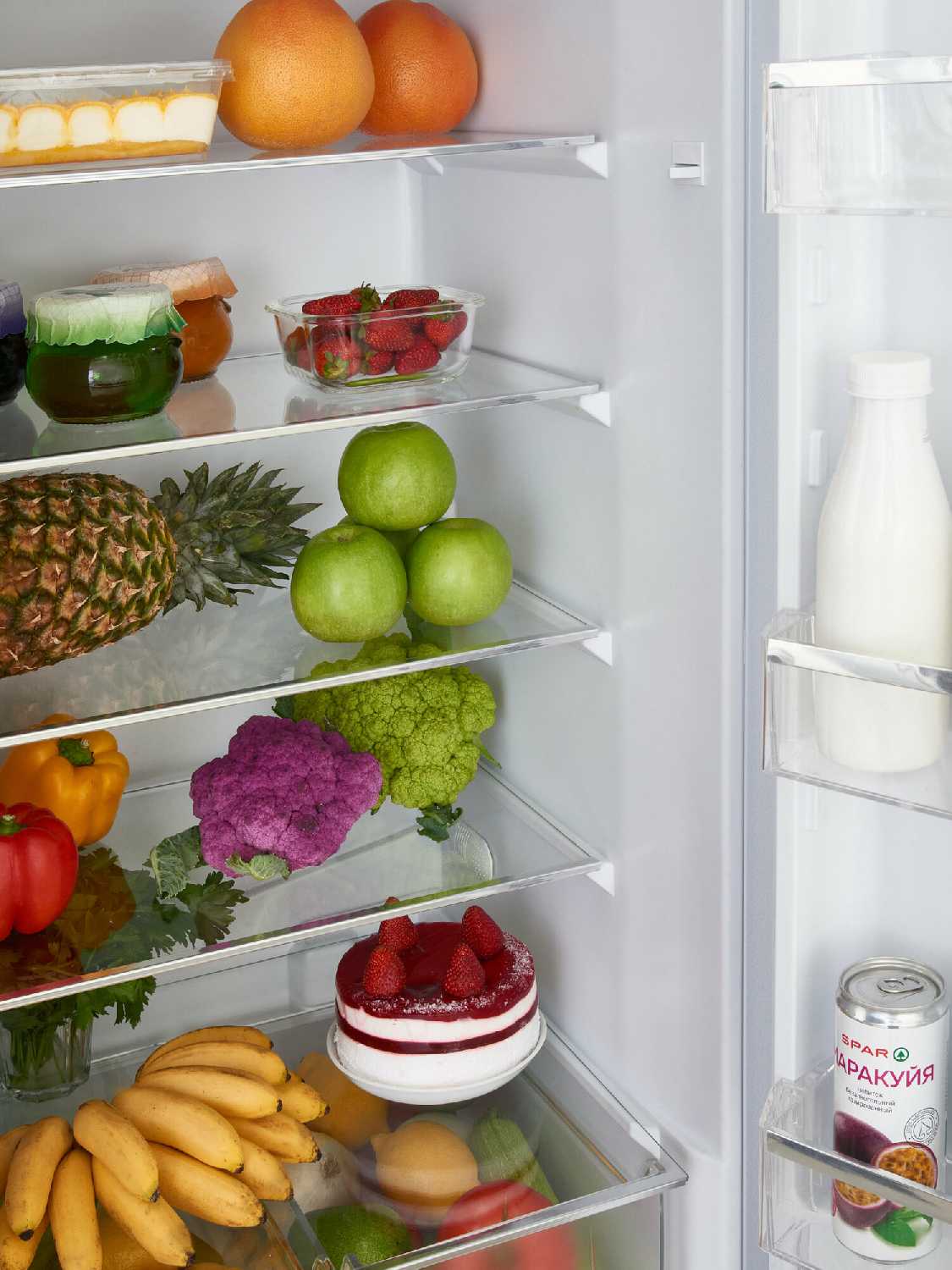в начале использования казалось что шумный, сейчас все ок, да немного шумноват, но это не критично. по вместимости визуально кажутся ящики морозилки очень маленькими, на практике же входит все необходимое, ну конечно если купить корову она не влезет в морозилку)