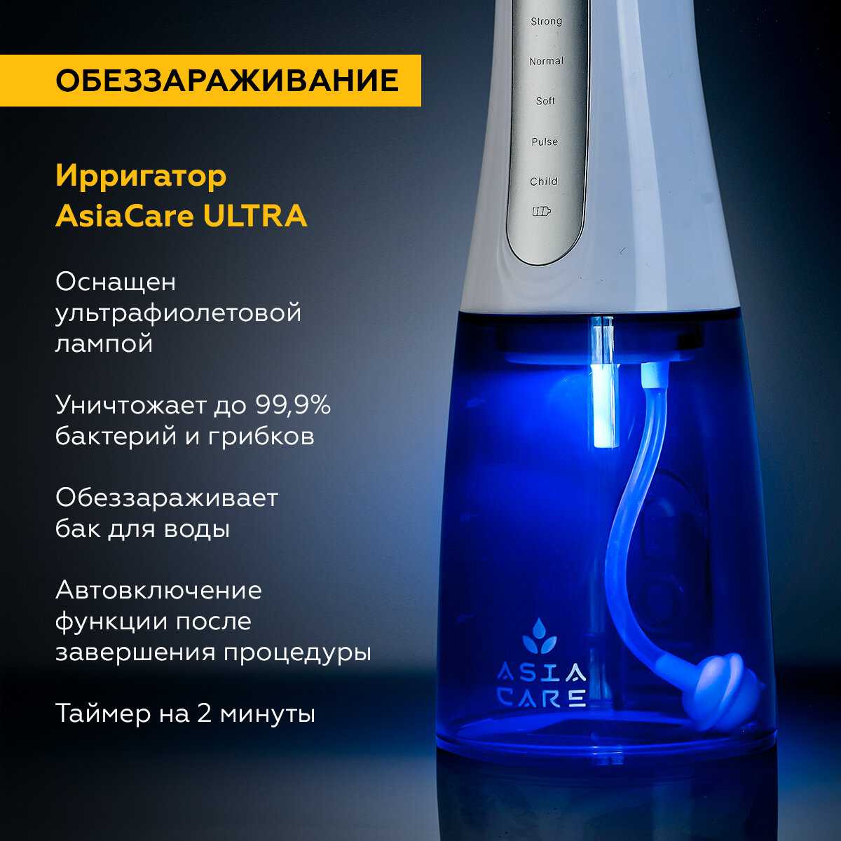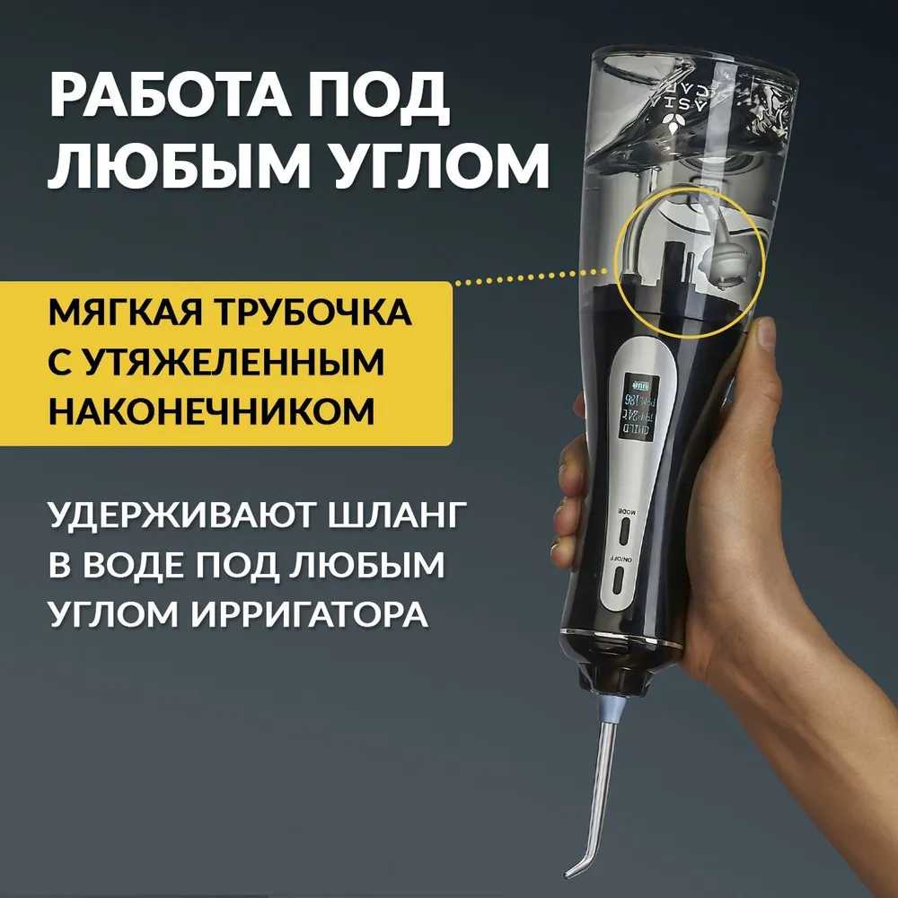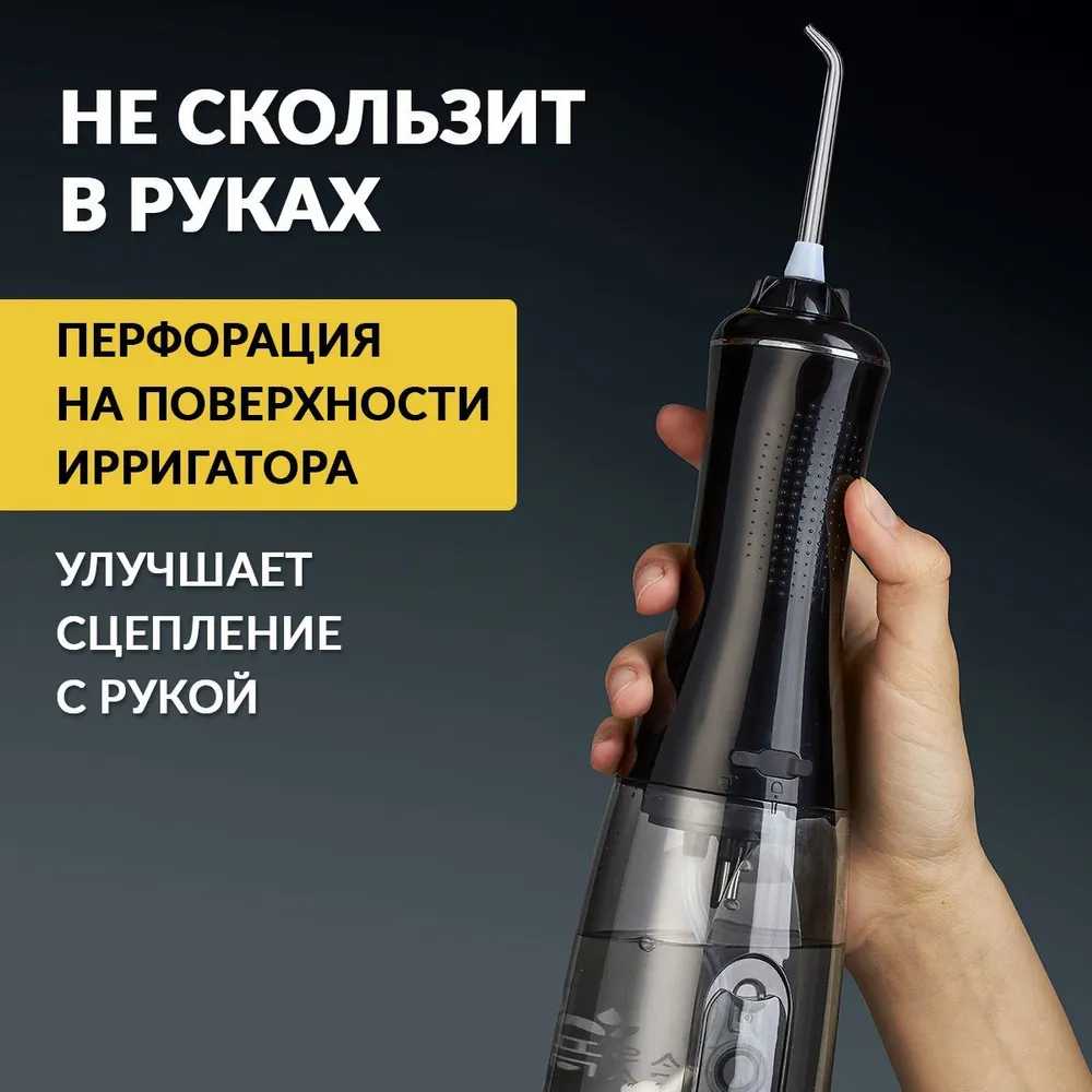 - Компактные габариты ирригатора позволяют заменить стационарные модели, а водонепроницаемый корпус упрощает эксплуатацию в ванной.