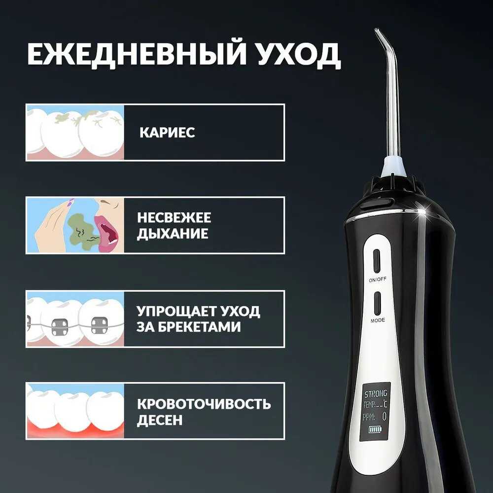 Ирригатор выделяется разнообразием специализированных насадок: для имплантов, языка, носовой полости и брекетов. Пользователи особенно ценят наличие двух одинаковых комплектов насадок, что позволяет использовать устройство двум людям одновременно. Режимы работы охватывают широкий диапазон: от деликатного «детского» до интенсивного, способного удалять зубной камень. Многие отмечают, что переход с обычной щётки на ирригатор кардинально улучшил гигиену — остатки пищи вымываются даже из труднодоступных мест. Однако некоторые столкнулись с тем, что на максимальном напоре воды в резервуаре хватает всего на 2 минуты, что требует долива. Важно: струя на высоких режимах может травмировать дёсны, если не соблюдать осторожность. Интересный нюанс — насадка для дёсен часто выходит из строя из-за конструктивных особенностей сопла. При этом эффективность против налёта и камня подтверждается: несколько пользователей с удивлением отметили, что устройство справилось с застарелыми отложениями.