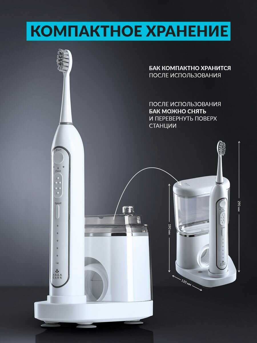 - Технический параметр: оптимизированная форма бака сокращает необходимость долива воды и упрощает уход за зубами.