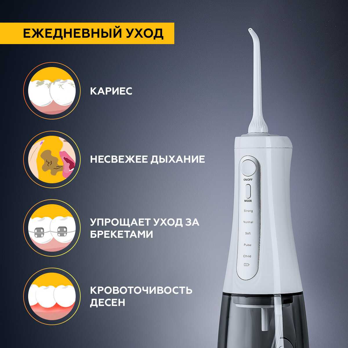 - - Думаю как и у всех ирригаторов - это насадка для дёсен, часто выходит из строя "сопло" у насадки для дёсен.