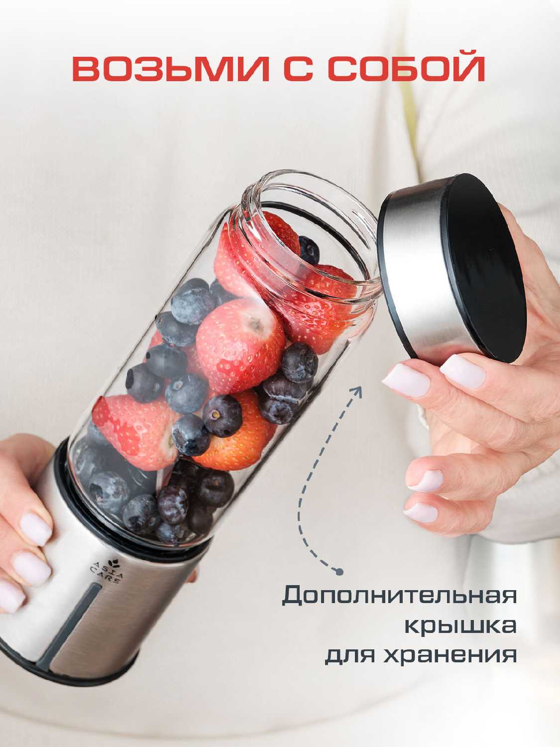 | Дополнительная информация : | Компектация: Инструкция на русском языке, стеклянный стакан, дополнительная крышка для хранения, USB - провод, основание блендера |