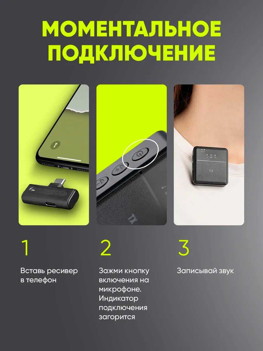 | Подробная комплектация : | петличный микрофон (2шт.), ресивер type-c, зарядка USB type-c (2 шт.), переходник для iphone, кейс для хранения |