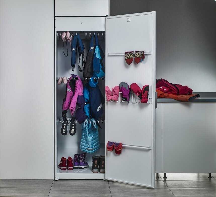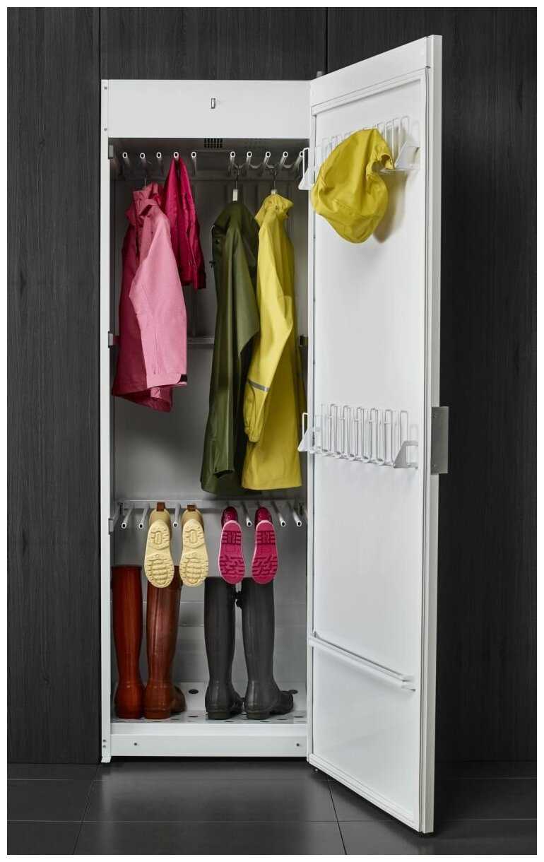 Подробная комплектация : | Сушильный шкаф, документация, вешалка для перчаток, полка для обуви, складные секции вешалок с телескопическими направляющими |