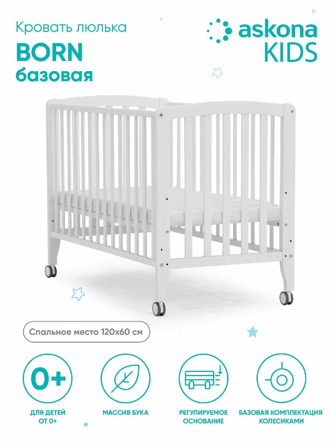 Комплектация : | Кровать детская Askona (Аскона) Born (Борн) базовая белая 60x120 |