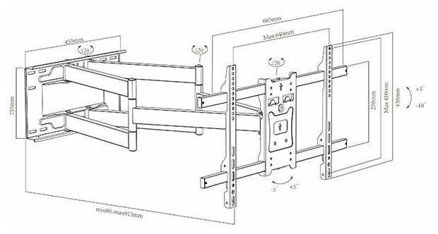 Способ регулировки : | наклон, наклон и поворот, отступ от стены, поворот |