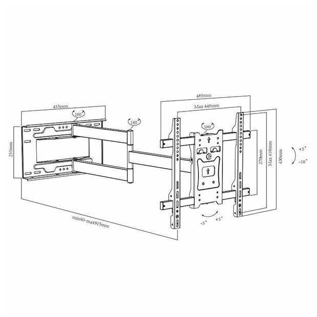 | Регулировка : | наклон, наклон и поворот, отступ от стены, поворот |