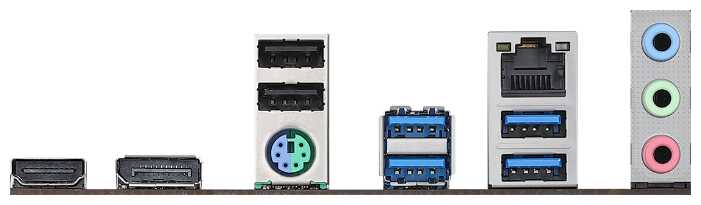 Разъемы на задней панели : | 4 x USB 3.2 Gen1 Type-A, DisplayPort, HDMI, LAN RJ-45, PS/2 (клавиатура), PS/2 (клавиатура/мышь), PS/2 (мышь), SMA (для антенны Wi-Fi) |