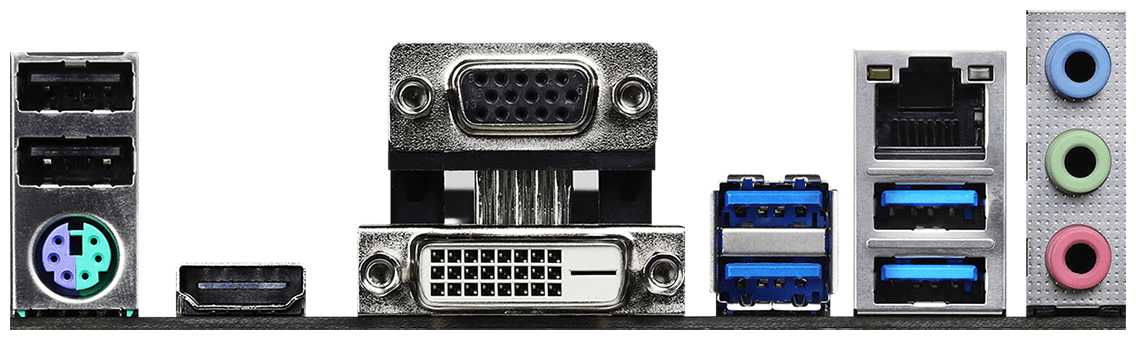 | Разъемы на задней панели : | 2 x USB 2.0 Type-A, 2 x USB 3.2 Gen1 Type-A, 4 x USB 3.2 Gen1 Type-A, DVI, HDMI, LAN RJ-45, PS/2 (клавиатура), PS/2 (мышь), VGA |