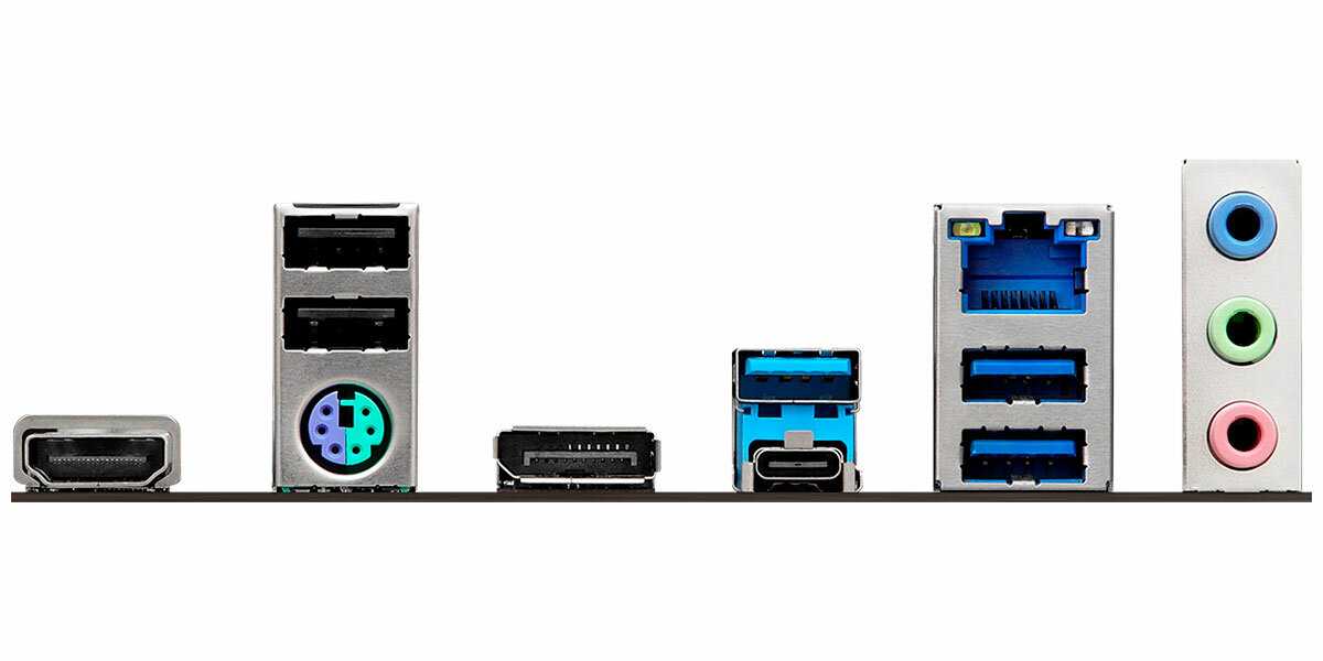 Разъемы на задней панели : | 2 x SMA (для антенны Wi-Fi), 2 x USB 2.0 Type-A, 3 x USB 3.2 Gen1 Type-A, DisplayPort, HDMI, LAN RJ-45, USB 3.2 Gen1 Type-C, USB 3.2 Gen2 Type-C |