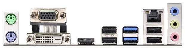 Разъемы на задней панели : | DVI, HDMI, LAN RJ-45, PS/2 (клавиатура), PS/2 (мышь), USB 2.0 Type-A, USB 3.2 Gen1 Type-A, VGA |