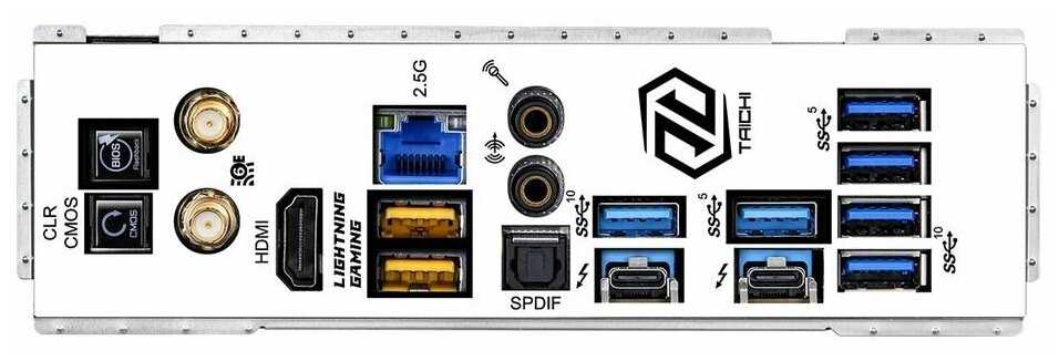 Разъемы на задней панели : | 2 x SMA (для антенны Wi-Fi), 2 x USB 3.2 Gen2x2 Type-C, 3 x USB 3.2 Gen1 Type-A, 5 x USB 3.2 Gen2 Type-A, HDMI, LAN RJ-45, Thunderbolt, выход S/PDIF оптический |