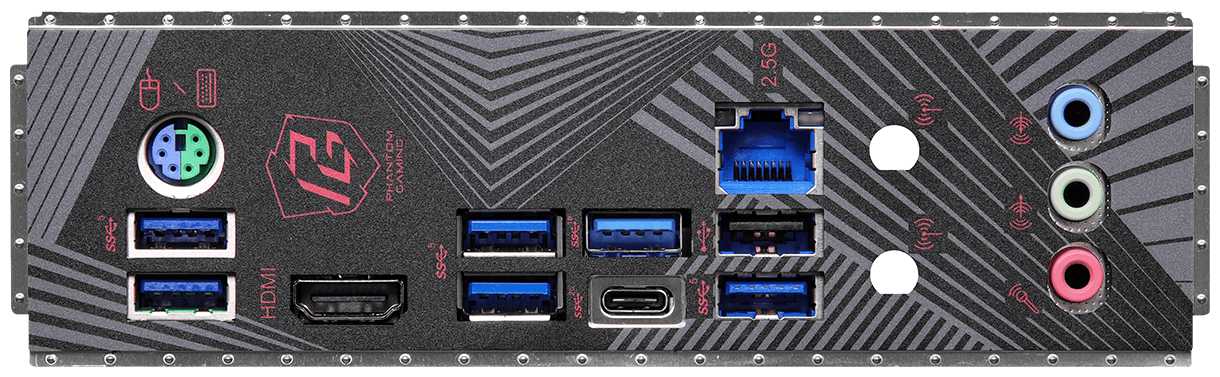 | Разъемы на задней панели : | 2 x SMA (для антенны Wi-Fi), 5 x USB 3.2 Gen1 Type-A, HDMI, LAN RJ-45, PS/2 (клавиатура/мышь), USB 2.0 Type-A, USB 3.2 Gen2 Type-A, USB 3.2 Gen2 Type-C, USB 3.2 Gen2x2 Type-C |