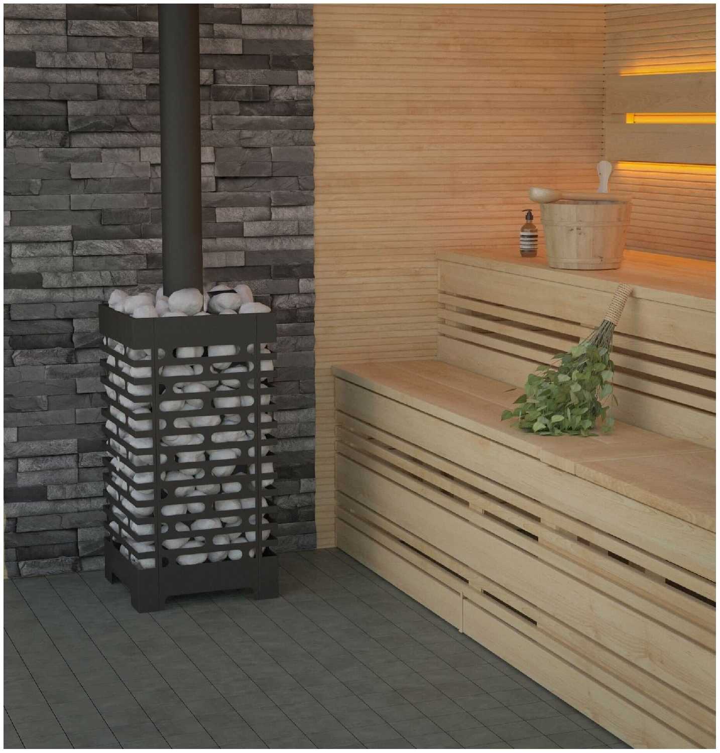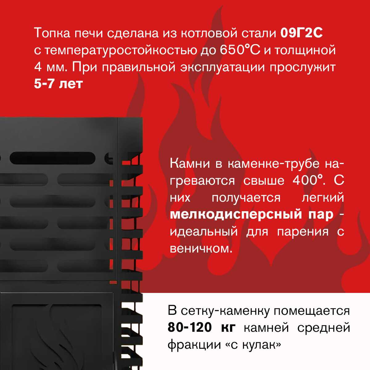 С виду небольшая, но вмещает 120 кг камней , что придает еще больше тепла в бане