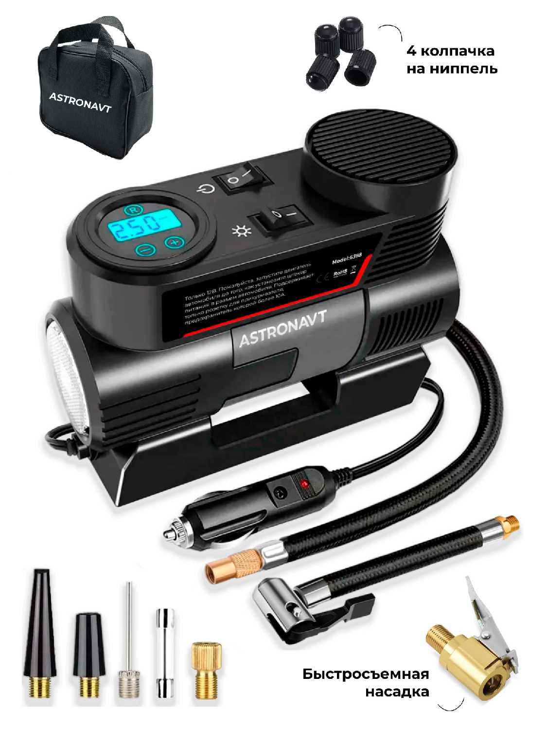 Дополнительные функции: Приятным бонусом оказалось наличие дополнительных насадок, которые позволяют использовать компрессор для других нужд, например, для накачки спортивного инвентаря.