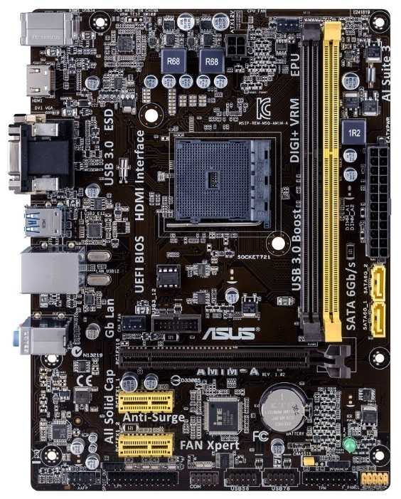 - + Качественная и производительная плата от Асус. В наличии практически все виды видевыходов. Дешево, покупал в сентябре 2017г. за 2020 рублей. Позволяет разгонять процессор по шине. Я разогнал до 2,2 Гц (на 7%), оценка производительности процессора Athlon 5350 в виндовс 7 при этом- 6,6. Больше разгонять...
