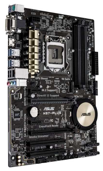 - + Поддержка будущих процессоров Broadwell. Есть много PCI, два разъема PS/2, CrossFireX.
