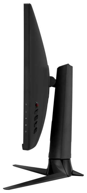 - Тонкие рамки и строгий дизайн ROG без лишних вставок подходят для рабочего стола; удобное управление джойстиком сзади.