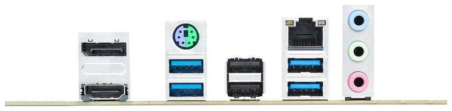 Разъемы на задней панели : | 2 x USB 2.0 Type-A, 4 x USB 3.2 Gen1 Type-A, DisplayPort, HDMI, LAN RJ-45, PS/2 (клавиатура), PS/2 (клавиатура/мышь), PS/2 (мышь) |