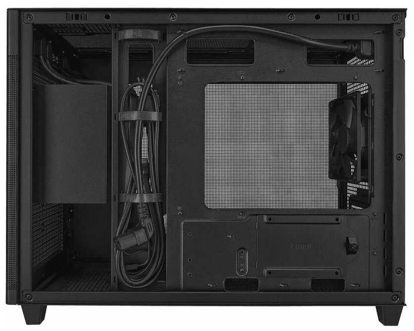 - Размещает до двух 3.5" HDD и SSD за материнской платой, сохраняя пространство для кабелей.