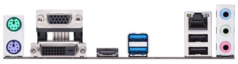 Разъемы на задней панели : | 2 x USB 2.0 Type-A, 2 x USB 3.2 Gen1 Type-A, DVI, HDMI, LAN RJ-45, PS/2 (клавиатура), PS/2 (мышь), VGA |