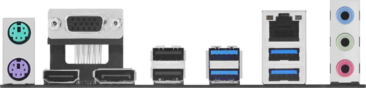 | Разъемы на задней панели : | 2 x USB 2.0 Type-A, 4 x USB 3.2 Gen1 Type-A, DisplayPort, HDMI, LAN RJ-45, PS/2 (клавиатура), PS/2 (мышь), USB 3.2 Gen1 Type-A, VGA, mini DisplayPort |
