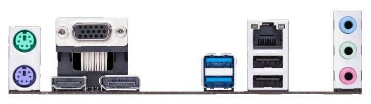 | Разъемы на задней панели : | 2 x USB 3.2 Gen1 Type-A, DVI, DisplayPort, HDMI, LAN RJ-45, PS/2 (клавиатура), PS/2 (мышь), VGA |