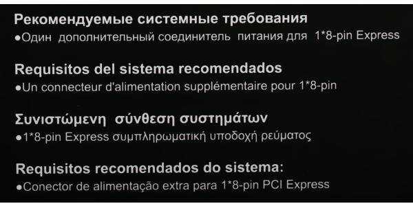 - - Сама по себе модель весьма слабая и старая, в актуальных играх не всегда способна выдать даже 30 ФПС. Разъем питания 8 пин, что может стать неприятным сюрпризом для обладателей старых блоков питания.