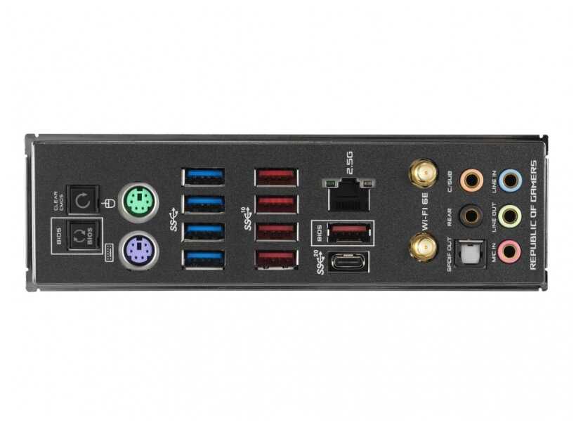 | Разъемы на задней панели : | 2 x SMA (для антенны Wi-Fi), 4 x USB 3.2 Gen1 Type-A, 5 x USB 3.2 Gen2 Type-A, HDMI, LAN RJ-45, PS/2 (клавиатура/мышь), USB 3.2 Gen2x2 Type-C, выход S/PDIF оптический |