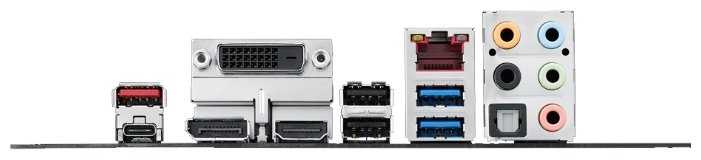 Разъемы на задней панели : | 2 x USB 2.0 Type-A, 2 x USB 3.2 Gen1 Type-A, DVI, DisplayPort, HDMI, LAN RJ-45, USB 3.2 Gen1 Type-C, USB 3.2 Gen2 Type-A, выход S/PDIF оптический |
