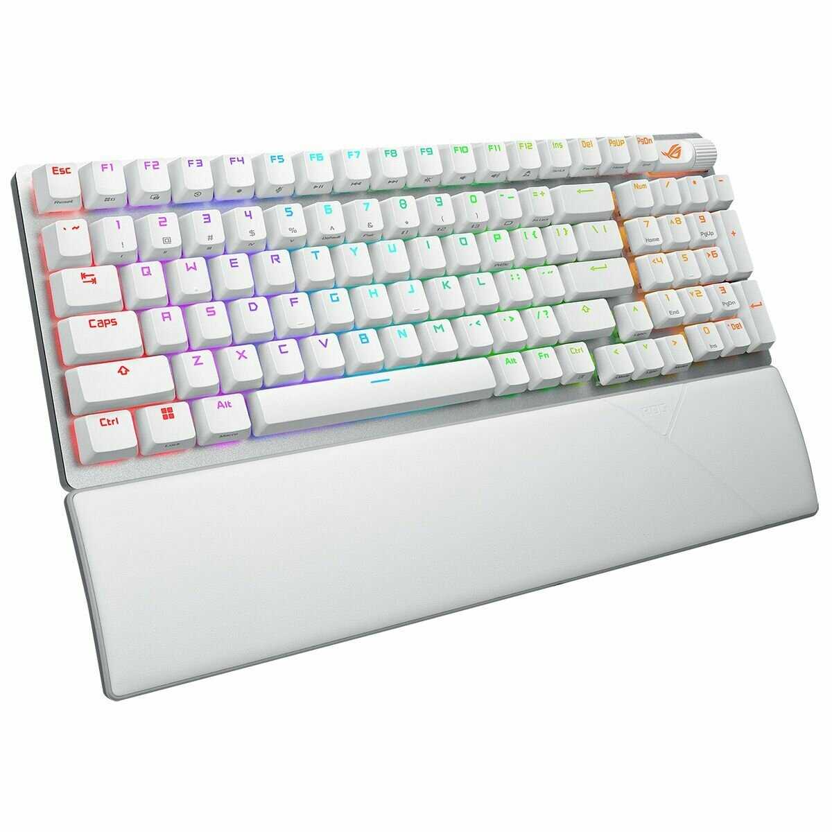 Сравнение с конкурентами на основе отзывов пользователей: По сравнению с Dark Project KD87A, ASUS тише и компактнее, с лучшим тайпингом, но требует привыкания к компоновке, в то время как Dark Project проще для слепой печати. Logitech визуально не привлекает пользователей ASUS, но их беспроводные модели стабильнее в софте, хотя ASUS выигрывает в автономности (7-10 дней против 5-7 у Logitech). Razer игнорируют из-за прошлых опытов с наушниками, но ASUS превосходит по тишине и отсутствию лага, хотя Razer предлагает лучший кастом свитчей. Corsair K40 уступает в ходе клавиш: ASUS мягче и тише, с оптическими свитчами для долговечности, но Corsair дешевле в обслуживании. MSI Vigor GK71 громче и занимает больше места, в то время как ASUS компактнее и тише на порядок, с лучшей подставкой под запястья. По сравнению с первой генерацией ASUS ROG Scope, новая модель жестче свитчи, тише и тяжелее, с джойстиком вместо базовых кнопок, но софт остался сырым. HyperX уступает в стабильности: ASUS не ездит по столу благодаря металлу, хотя HyperX проще в макросах. Dark Project и Logitech проигрывают в полноразмерности: ASUS дает нумпад в TKL-размере, чего нет у конкурентов за похожие деньги. В целом, ASUS лидирует в балансе компактности и функционала, но отстает от Razer и Corsair в кастомизации. Пользователи отмечают, что за масс-маркет ASUS — топ, но кастомщики предпочтут сборку сами.